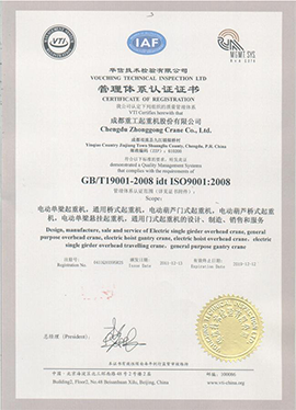 成都重工起重機股份有限公司,位于“天府之國”的成都市雙流西南航空港經濟開發區,擁有交通便利、信息發達之優勢。是國內從事起重機械設備產品開發、設計、制造及服務為一體的專業公司。公司已通過了國家質量監督檢驗檢疫總局的檢驗,并已取得了《中華人民共和國特種設備制造許可證》和《中華人民共和國特種設備安裝、改造、維修許可證》。